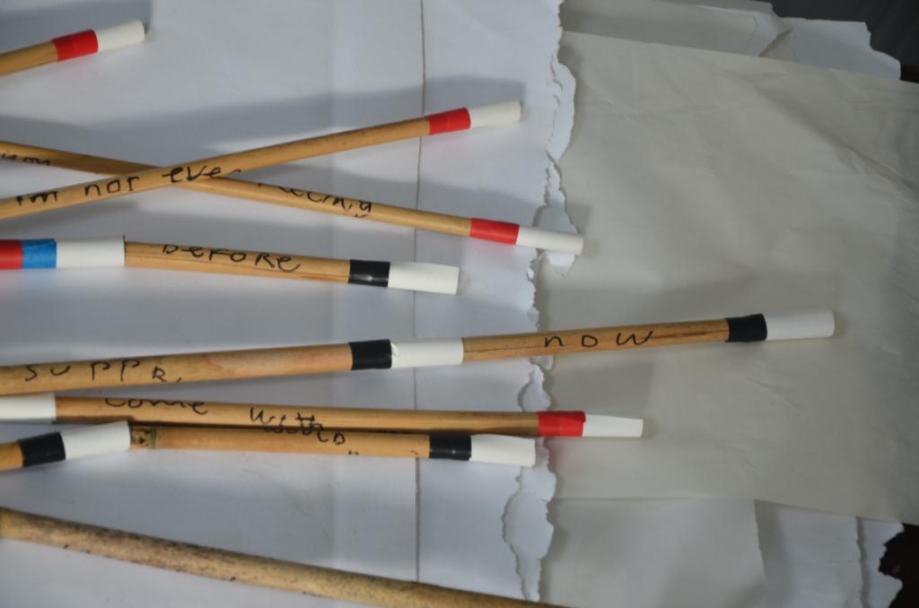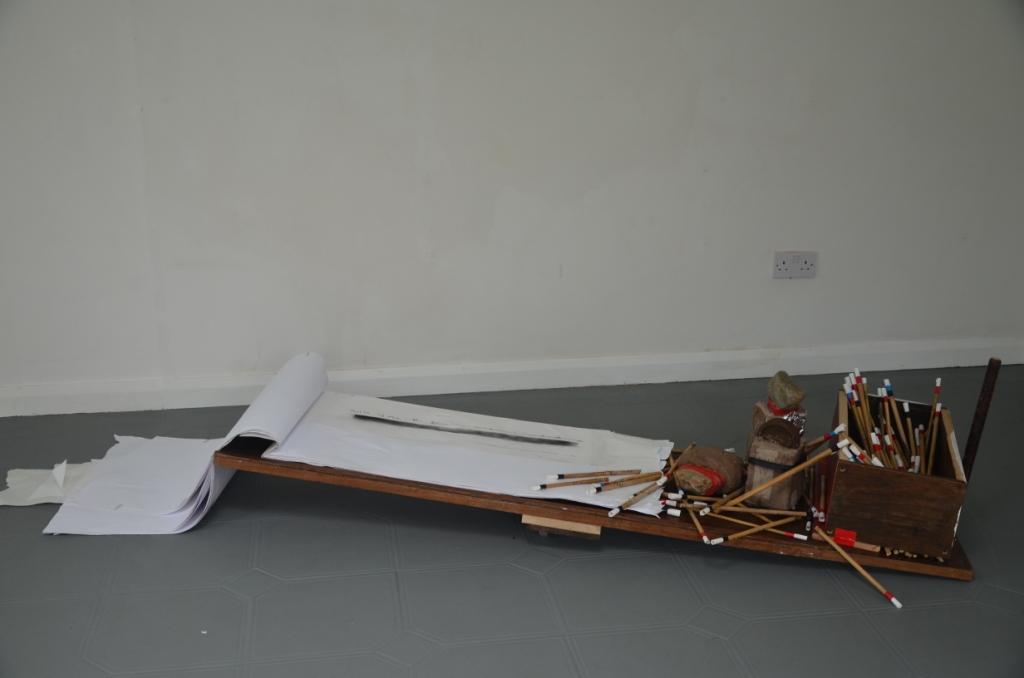 These phrases are then presented layering real contexts with fiction. The original context and meanings have been omitted. This places the content of these gathered fragmented discourses in a new inter-active sculptural context. The sculpture offers an intimate experience of scrutiny and enquiry.