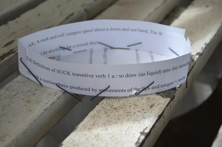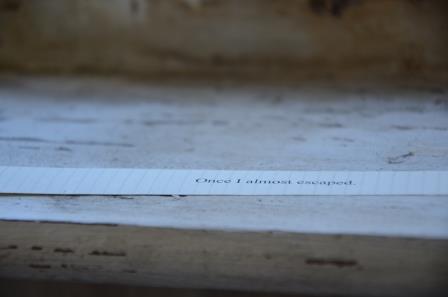 This was carried out during the two-week artist residency at ARTSPACE. Here I was able to utilise the’ summerhouse’ as a place in time. The nature of this work, the dimensions of the space, atmosphere, lighting and sense of the passage of time became very important element in the experimental nature of this collaboration. I developed notions relating to the text, use of words materials construction methods which manifest themselves in a changing and developmental installation over the two-week period of time which might be better timed as a series of layered narrative based interventions. The installations became along with the construction of objects and development of text and visual based dialogues recorded through photography. The use of the photography extended the work, through the exploration of the summerhouse’s environment. The use of atmosphere, light and colour through the framing and compositional process developed a series of images which could be edited into a book format.